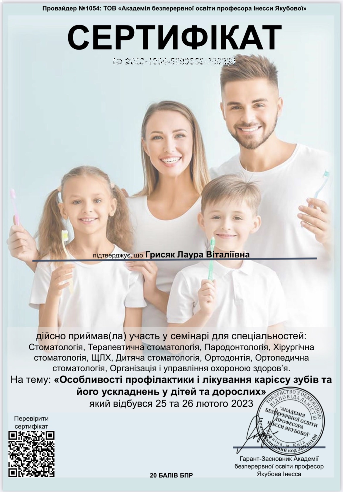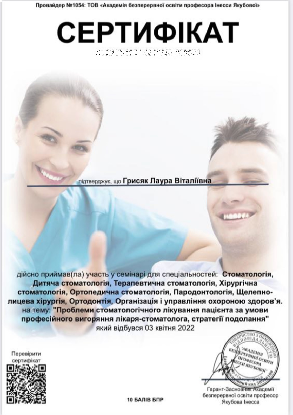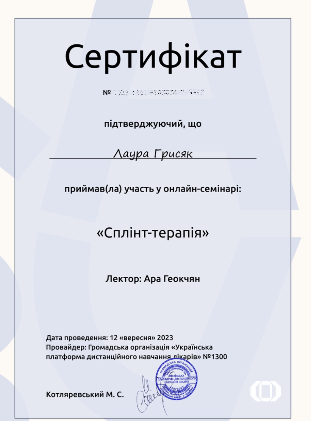 Сертифікати лікарів